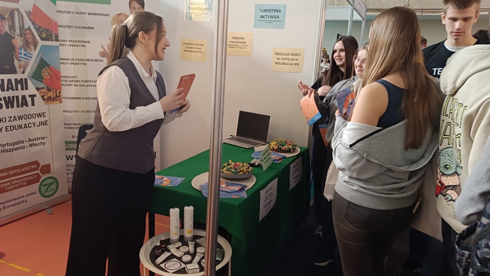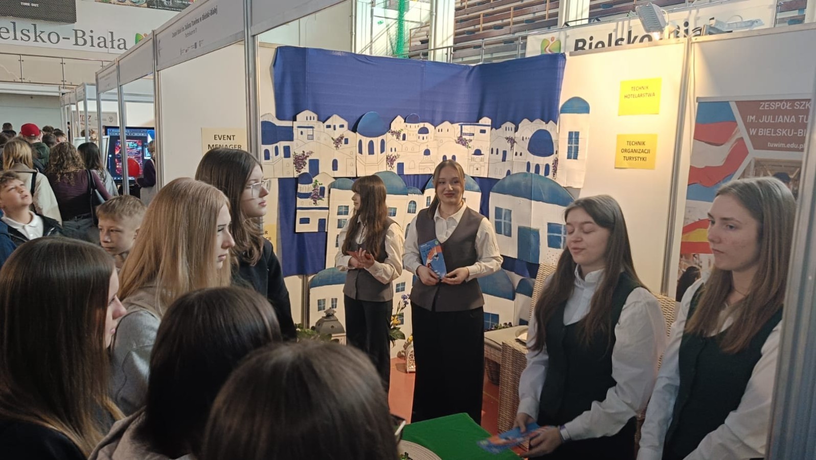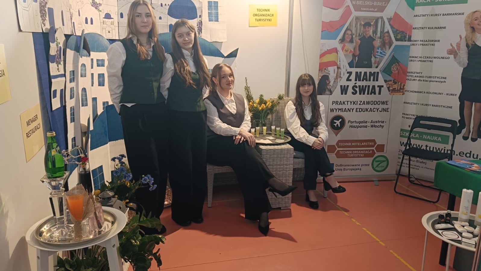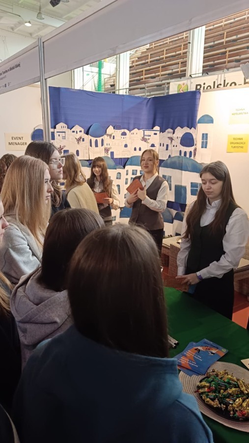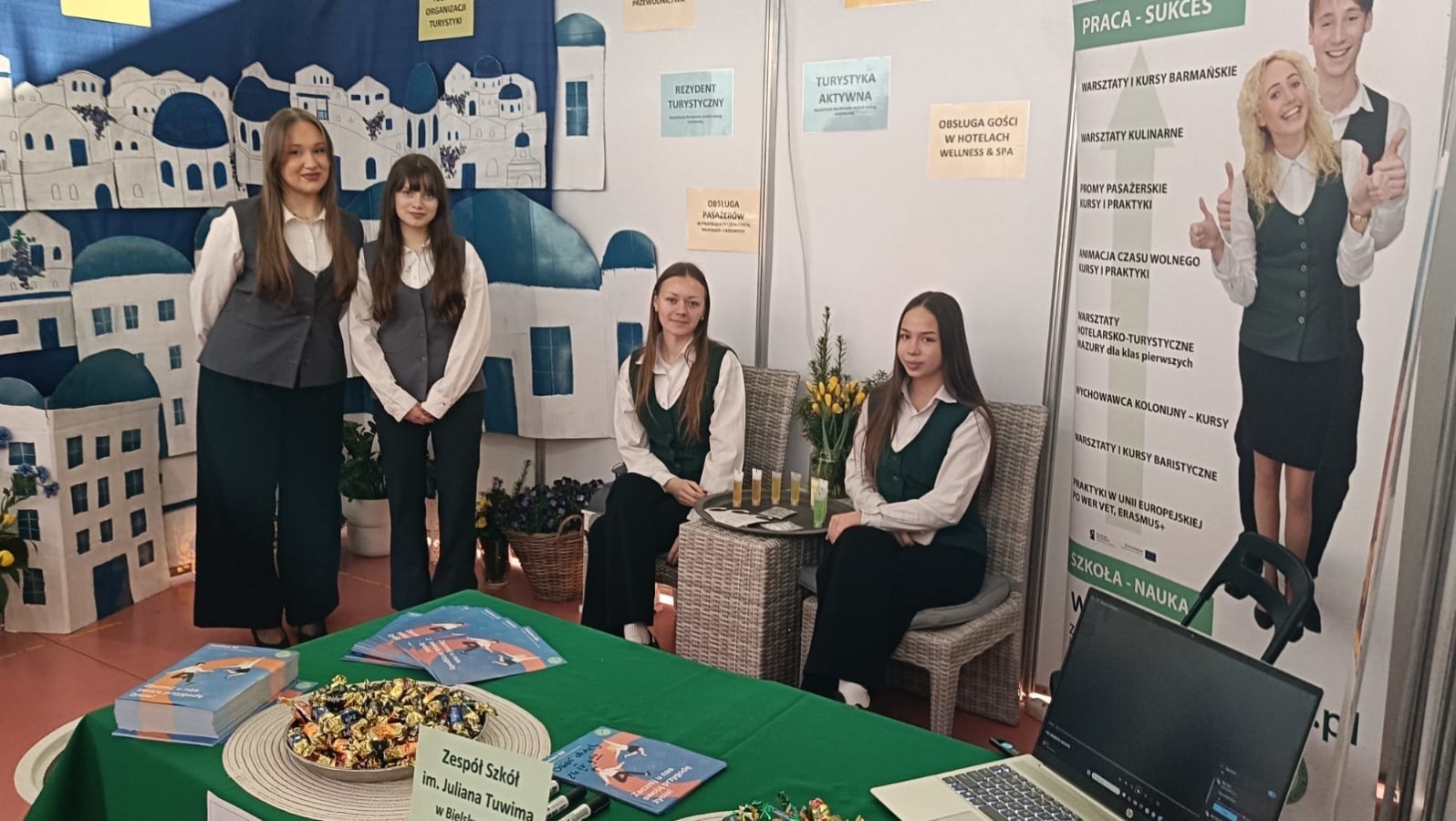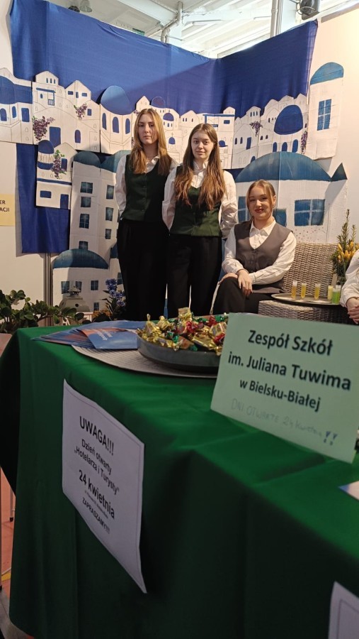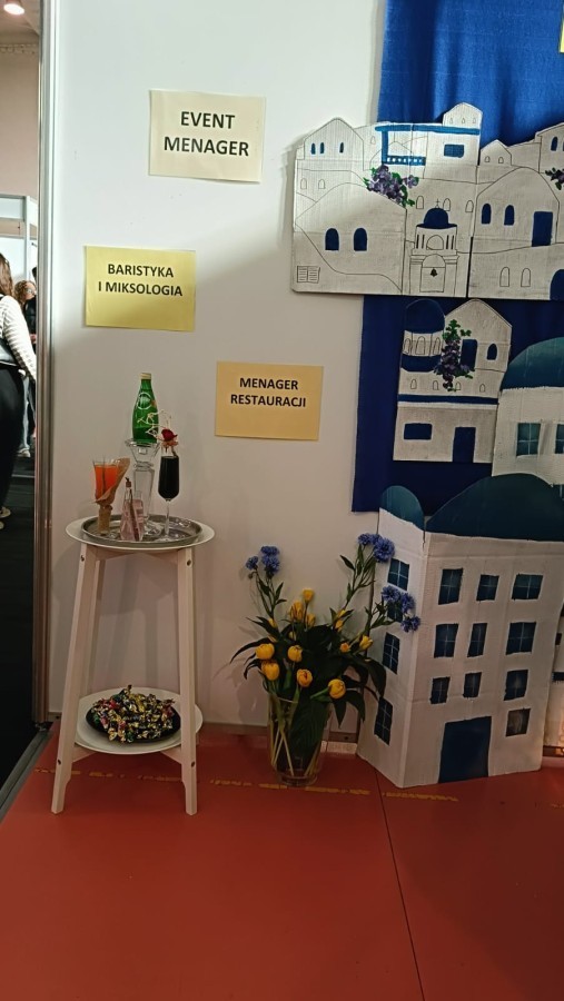 Inspiruj膮c si臋 architektur膮 Santorini, stworzyli艣my przestrze艅, która zapada艂a w pami臋膰. Wystrój stanowiska i aromat greckiej kuchni stanowi艂y idealne t艂o dla merytorycznych rozmów o przysz艂o艣ci w bran偶y turystycznej i hotelarskiej. Nasi reprezentanci z entuzjazmem dzielili si臋 do艣wiadczeniami z zagranicznych praktyk, udowadniaj膮c, 偶e wybór „Tuwima” to bilet do mi臋dzynarodowej kariery.